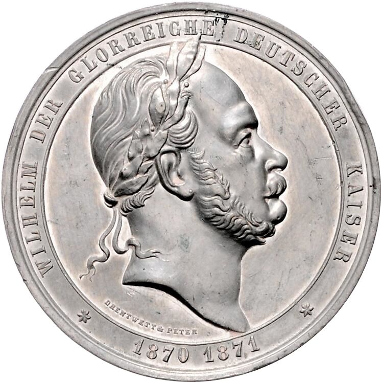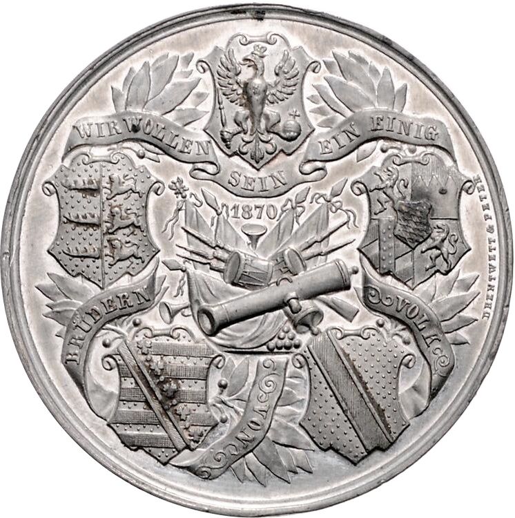 Опис: Військові трофеї, оточені 5 гербами (Пруссія, Баден, Баварія, Саксонія, Вюртемберг) та прапором.