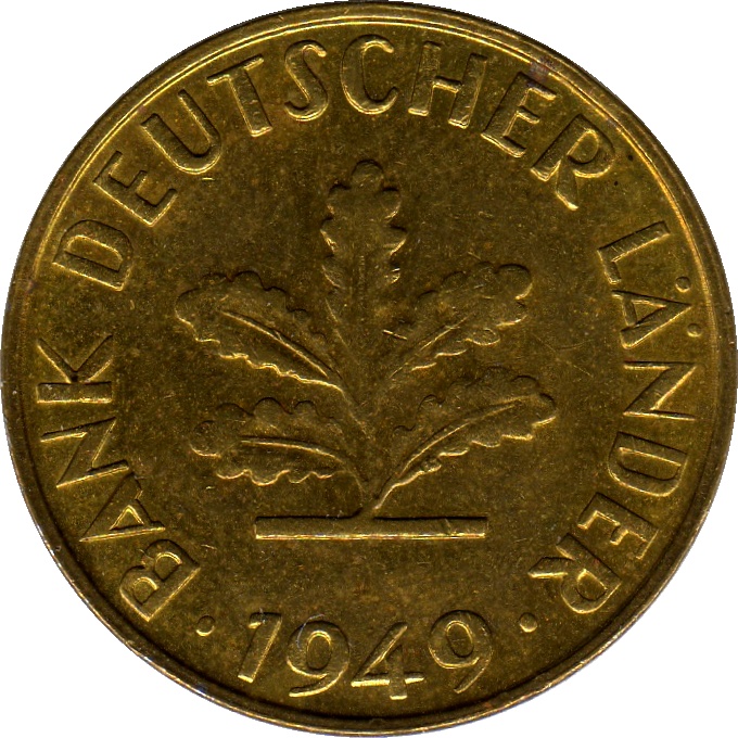 10 пфеннігів (Банк німецьких держав) 1949 – 1949 Німеччина, Федеративна Республіка