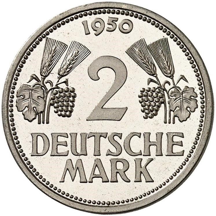 2 німецькі марки (зразок) 1950 – 1950 Німеччина, Федеративна Республіка