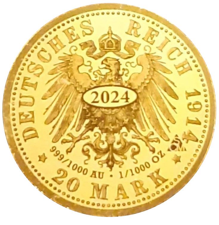 20 марок — Фрідріх Август III (Саксонія; перекарбування) 2024 – 2024 Німеччина, Федеративна Республіка