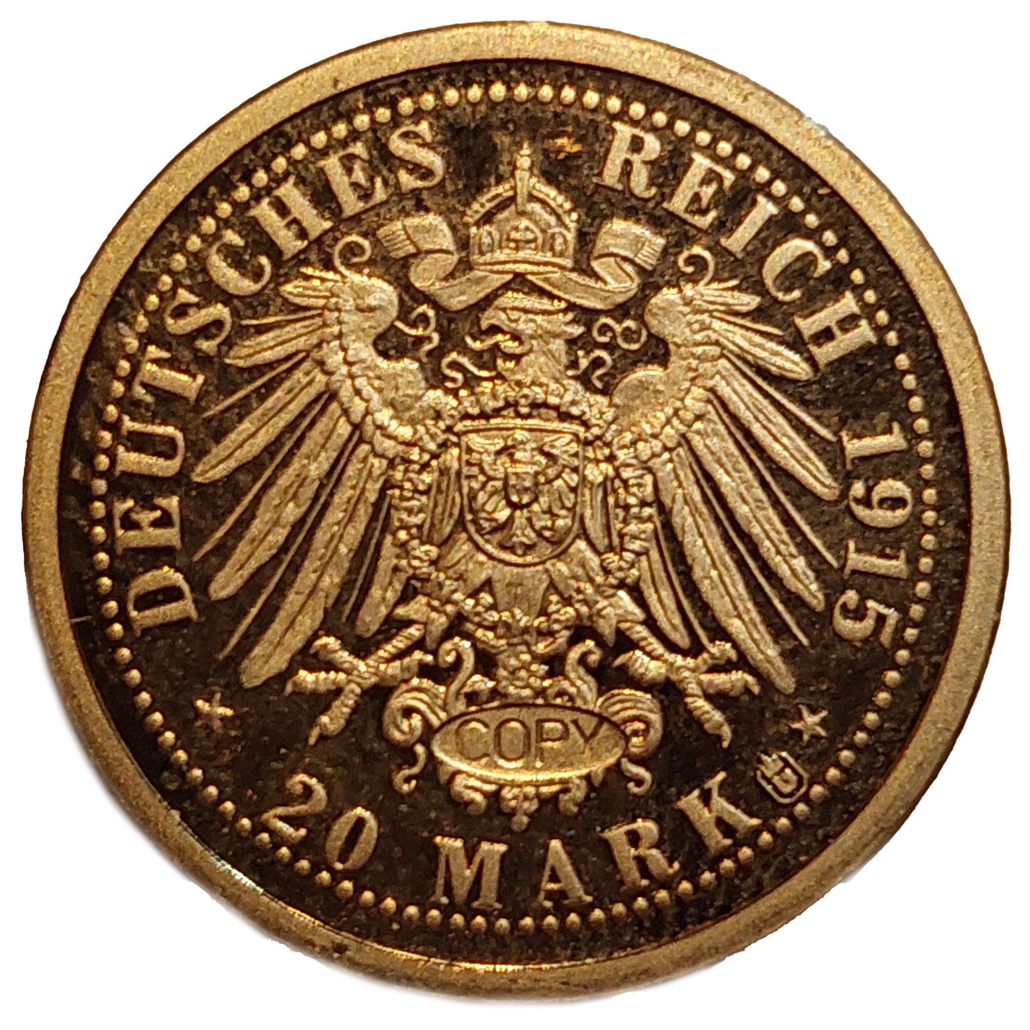 20 марок — Вільгельм II (репліка) 1915 – 1915 Німеччина, Федеративна Республіка