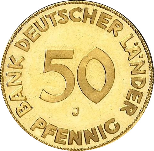 50 пфеннігів (золотий зразок) 1949 – 1949 Німеччина, Федеративна Республіка