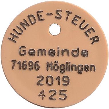 Назва: Жетон для сплати податку на собак, Мьоглінген, 2019 рік