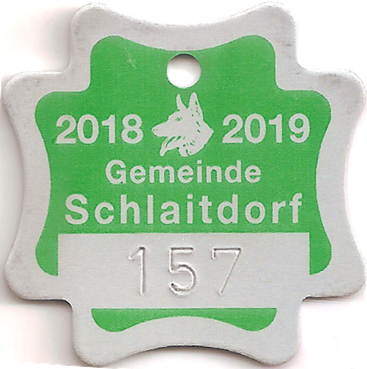 Назва: Жетон для сплати податку на собак Шлайтдорф 2018-2019
