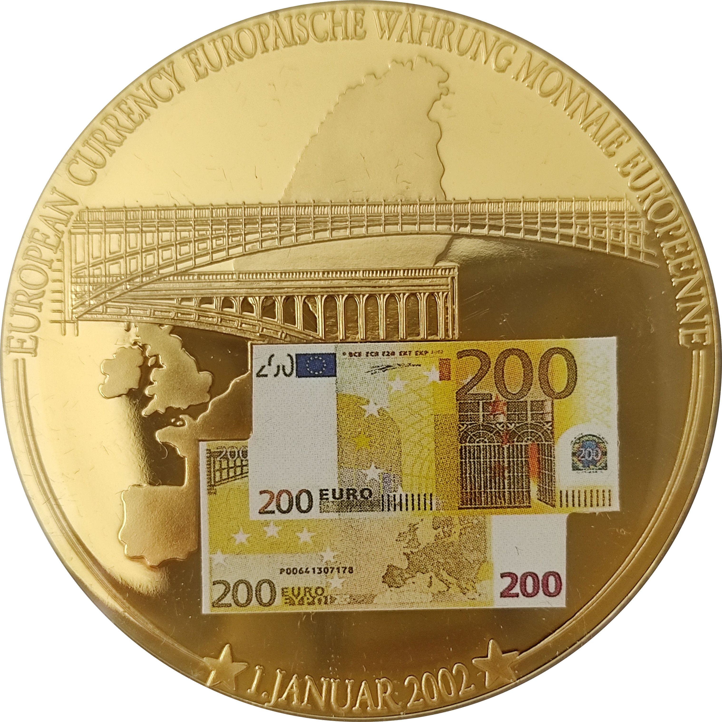 Назва: Медаль — 200 євро Банкнота — Банкнота Введення євро 1 січня 2002 року