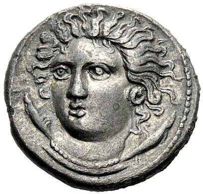 Опис: Бюст німфи Камаріни, звернений на три чверті вліво, волосся розвівається позаду вільними локонами, вона носить сережки та намисто. З обох боків шиї піднімаються риби.