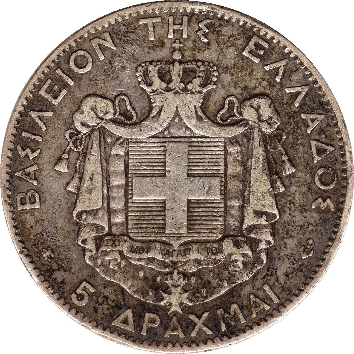 5 драхм — Георг I (2-й портрет) 1875 – 1876 Греція