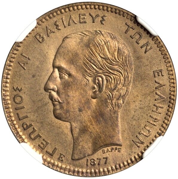 5 лепта — Георгій I (зразок) 1877 – 1877 Греція