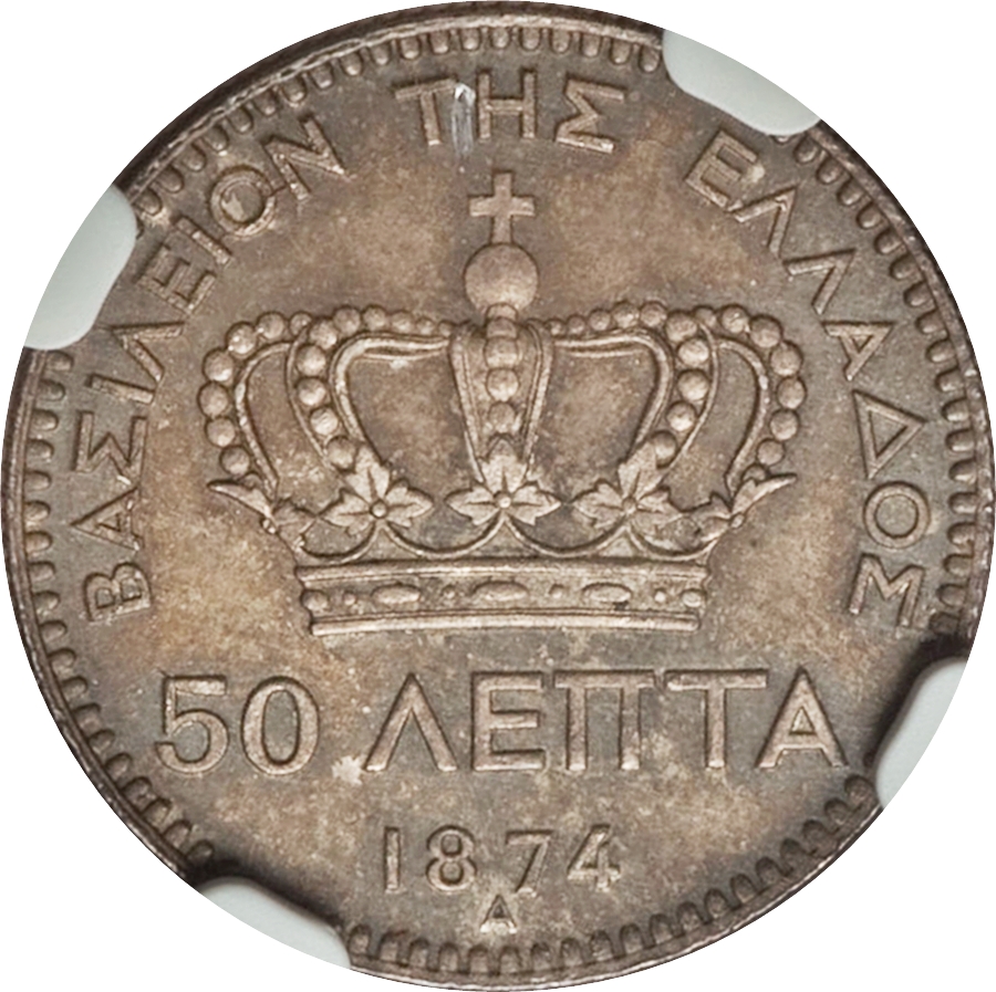 50 лепт — Георг I (1-й портрет) 1868 – 1883 Греція