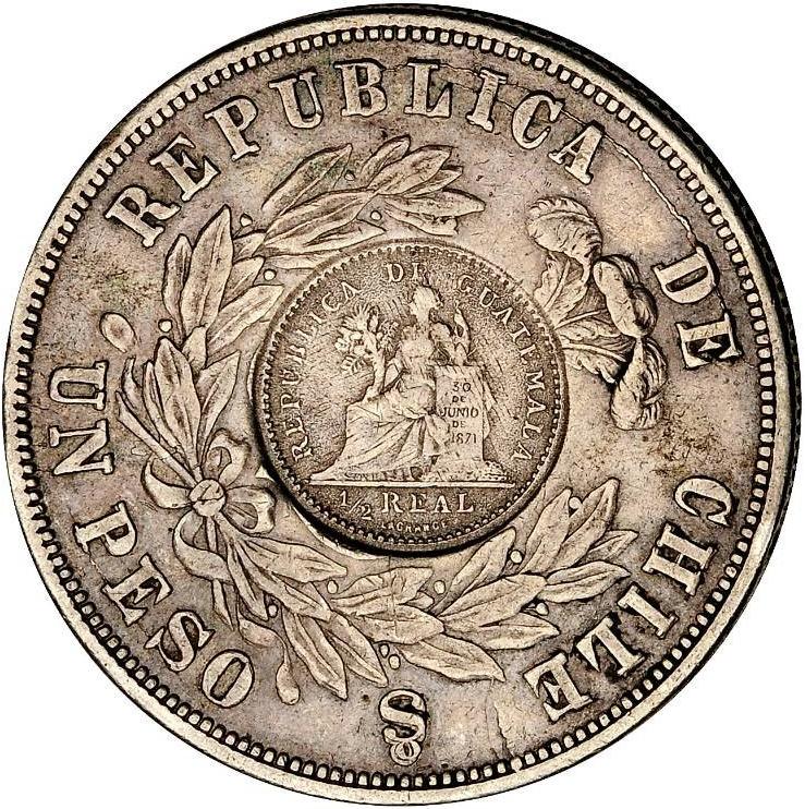 1 песо (монета з контрштампом) 1894 – 1894 Гватемала