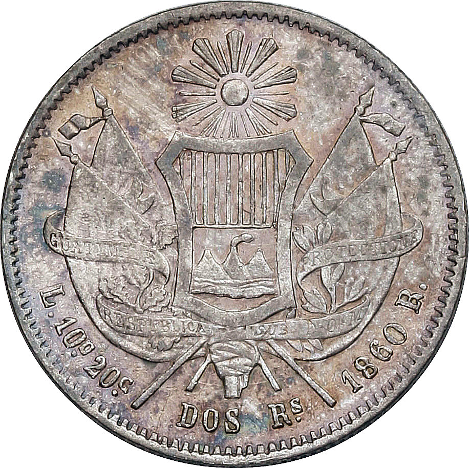 2 реале (Рафаель Каррера) 1860 – 1861 Гватемала
