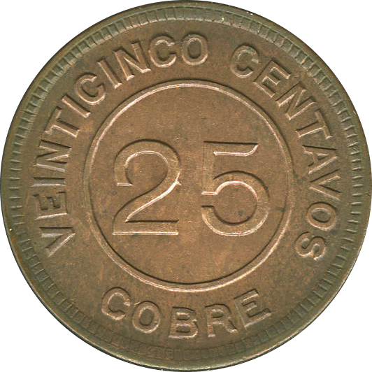 25 сентаво (тимчасова монета) 1915 – 1915 Гватемала