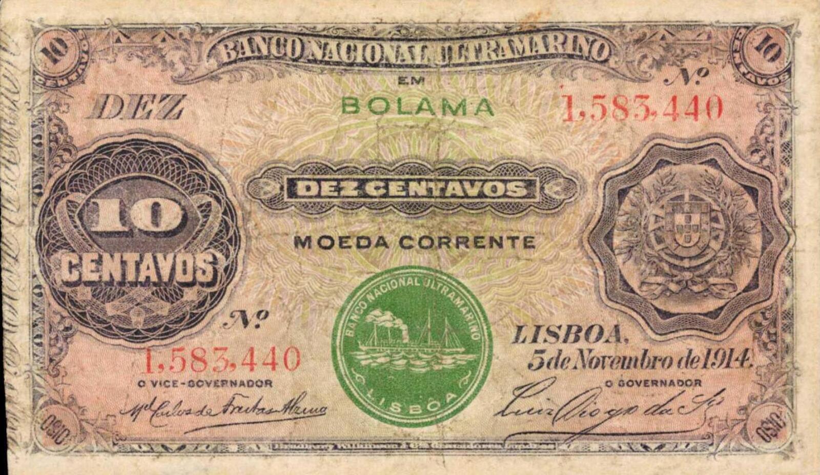 10 сентаво (тип печатки II) 1914 – 1914 Португальська Гінея