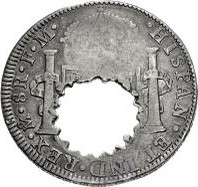 Гурт: Дизайн гурта ідентичний монеті Мехіко 8 реалес.