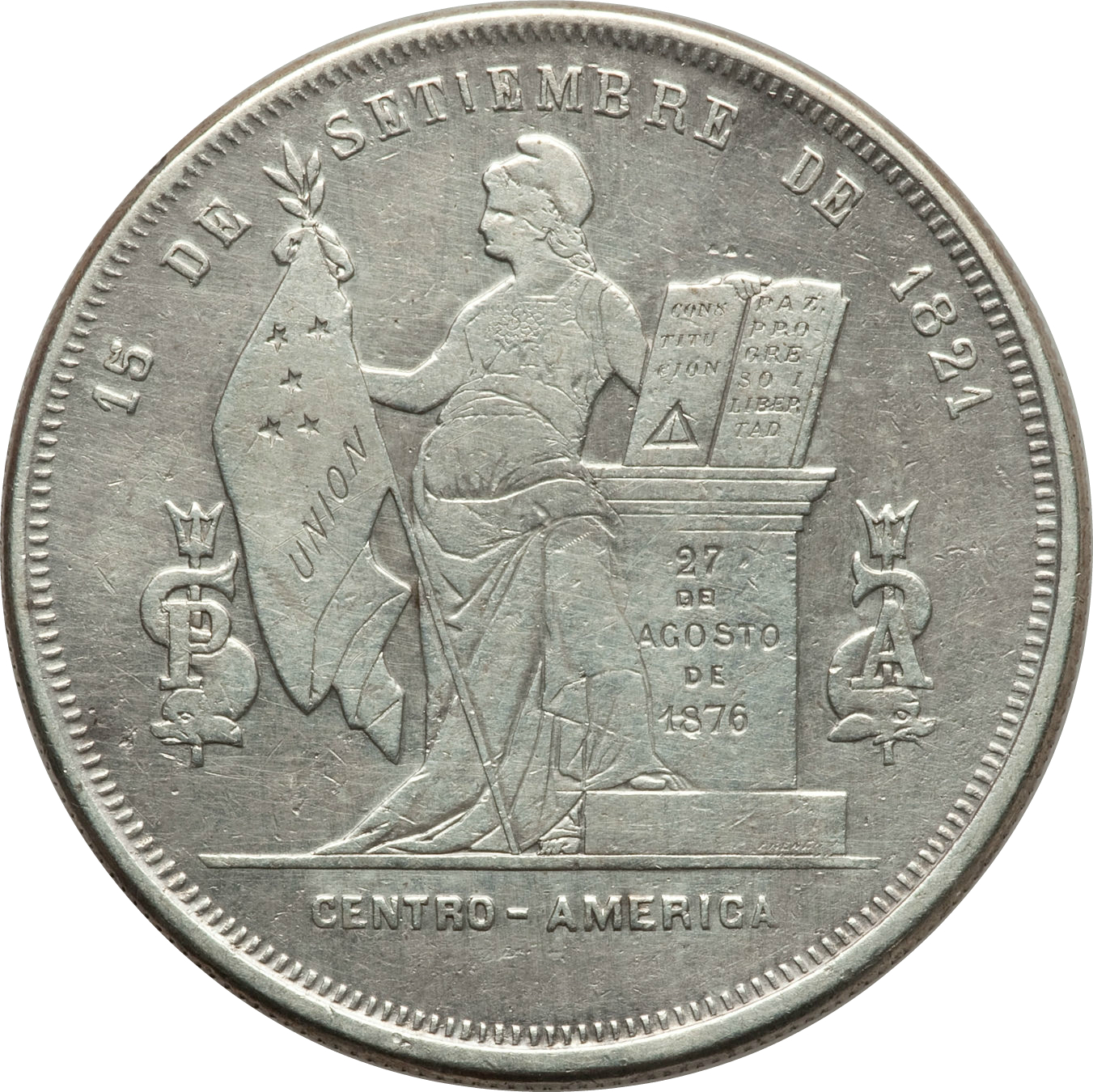 Опис: Стояча Свобода з лівою ногою на основі колони. У правій руці вона тримає прапор з 5 зірками та написом UNION. Ліва рука спирається на Конституцію. Напис у верхній частині. Тритони та тризуби з обох боків з літерами P та A. Напис під підлогою.