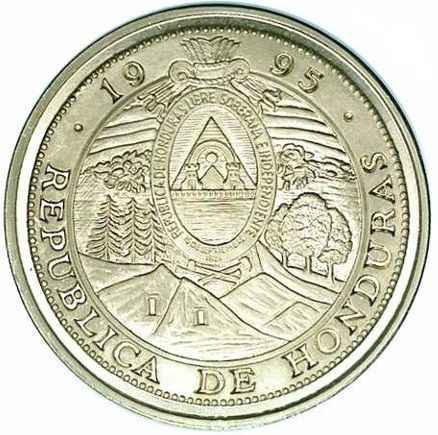 10 лемпір (зразок; білий метал) 1995 – 1995 Гондурас