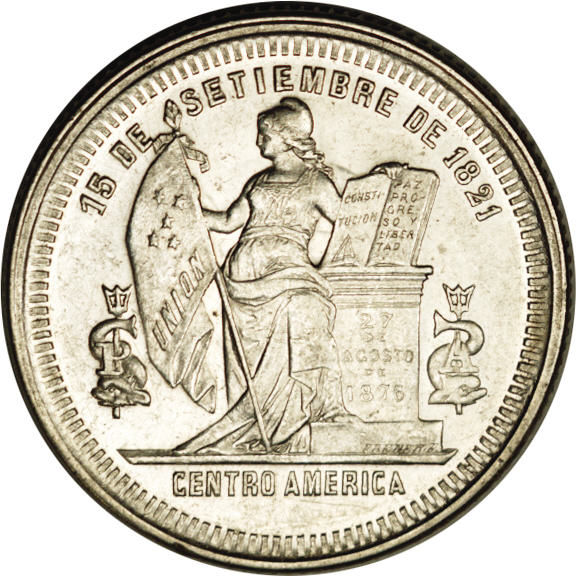 Опис: Стояча Свобода, в правій руці тримає прапор з п'ятьма зірками та написом UNION. Ліва рука спирається на конституцію та колону. Тризуби з боків з літерами P та A. Напис зверху та знизу.