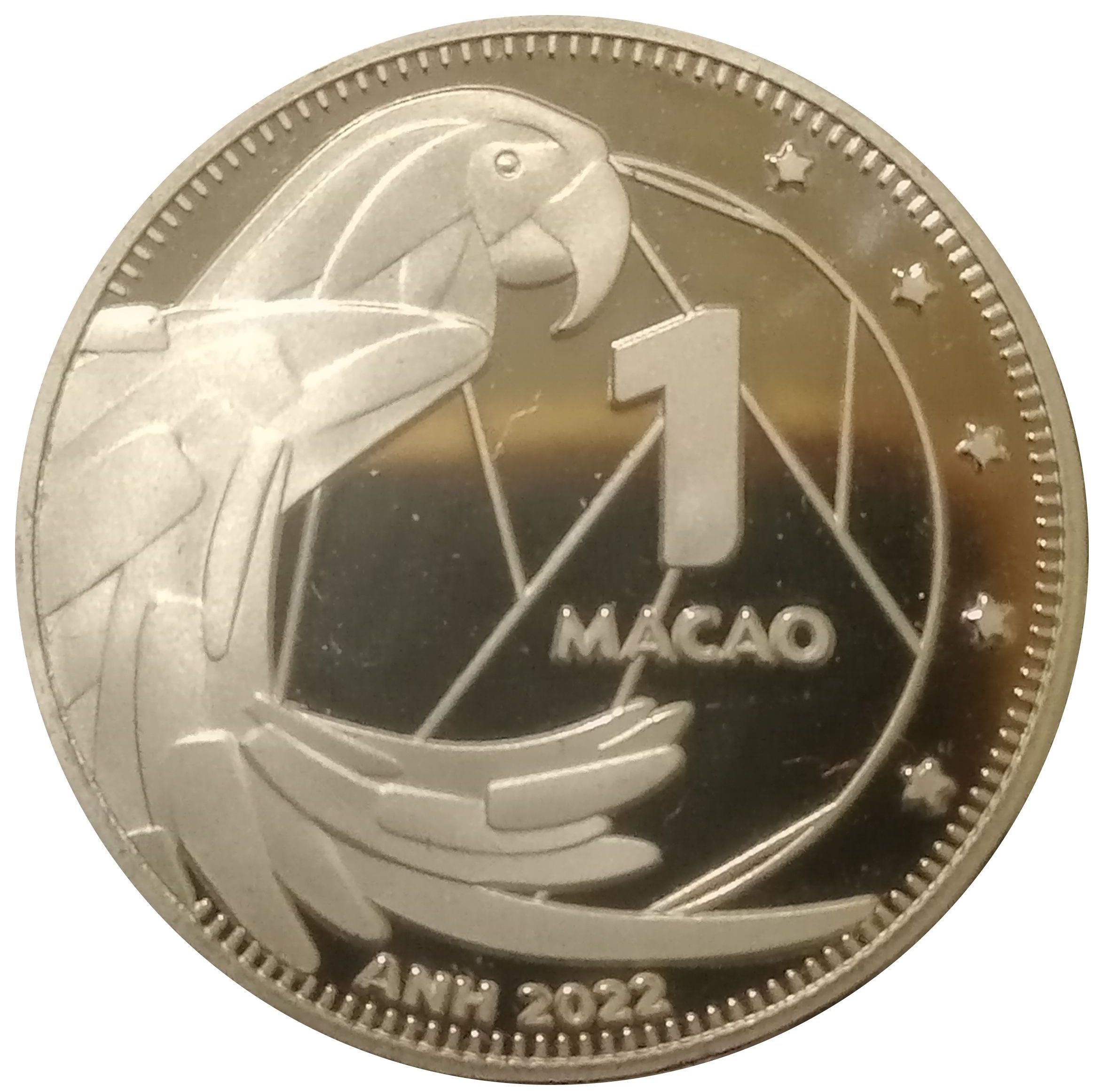 Опис: Стилізований малюнок папуги (ара) на геометричному тлі. Вертикальний напис розміщений під номіналом «1», а рік «2022» вигравіруваний поруч з абревіатурою «ANH», що означає Asociación Numismática de Honduras (Нумізматична асоціація Гондурасу). 5 зірок, що символізують прапор Гондурасу.