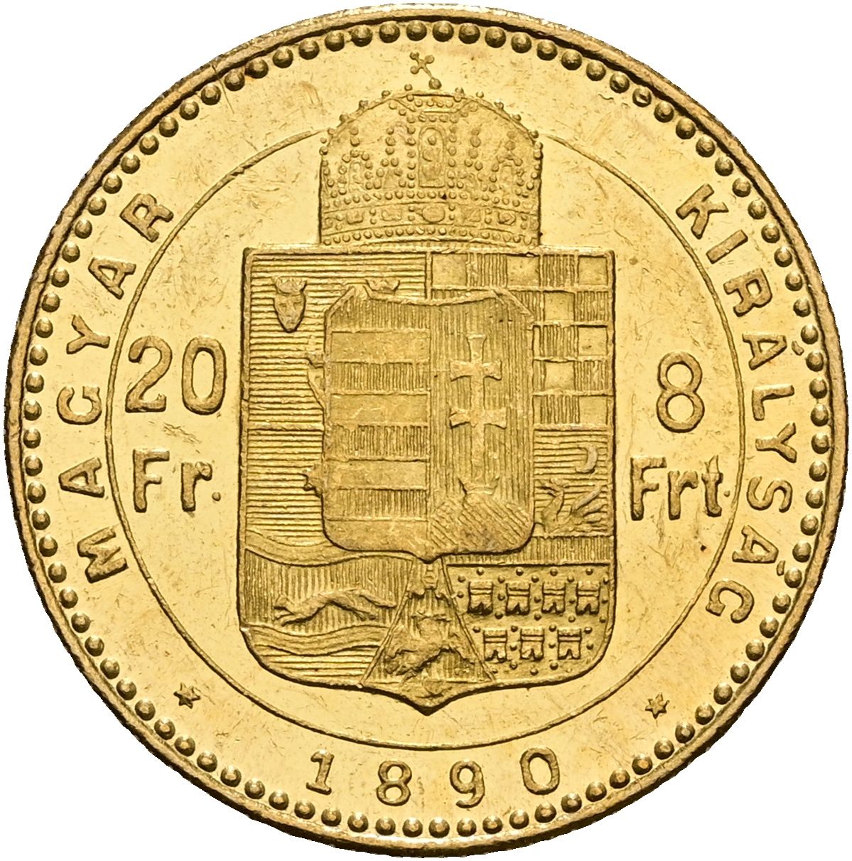 20 франків / 8 форинтів — Франц Йосиф I 1890 – 1892 Угорщина