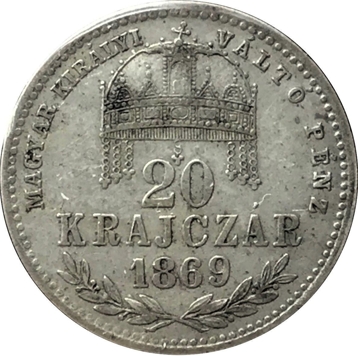 20 крейцерів — Франц Йосиф I 1868 – 1869 Угорщина