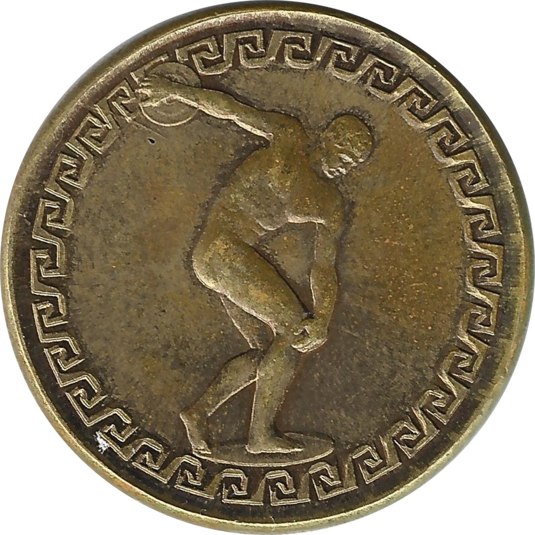Опис: Грецький фриз по краях. Голий метальник диска в центрі.