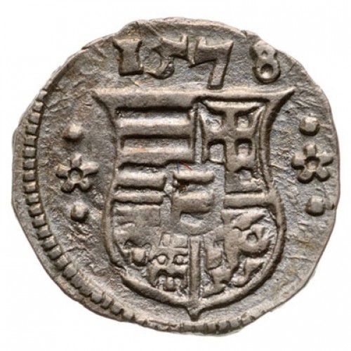 Опис: Вигнутий, загострений чотирикратний угорський герб: угорські смуги Арпада, угорський подвійний хрест, далматинські леопардові голови, богемський лев; на центральному щиті на грудях: австрійські облігації. Дві розетки з боків між двома крапками вертикально, рік карбування над щитом.