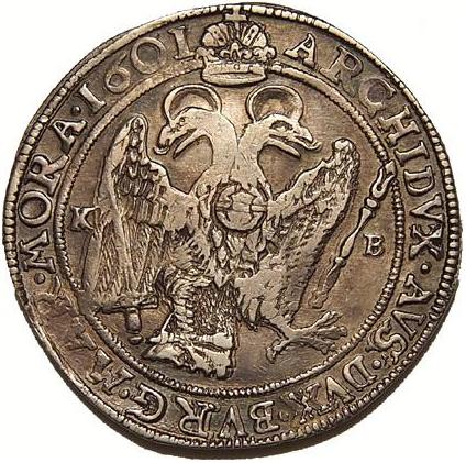 Опис: Броньований бюст без корони в рюшевому комірі (молодший портрет), що дивиться вправо. Перлинне кільце під колом напису. Менший угорський чотирикратний герб у колі за шиєю; менша Мадонна з дитиною на півмісяці праворуч.