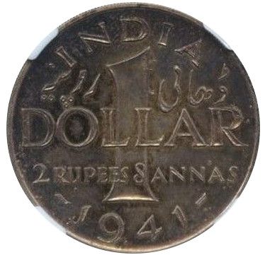 1 долар — Георг VI (срібний зразок, 1-й різновид) 1941 – 1941 Індія — Британська