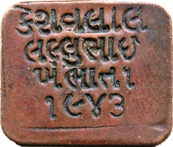 1 Анна — жетон їдальні Кешавлала Лаллубхая (Камбай)