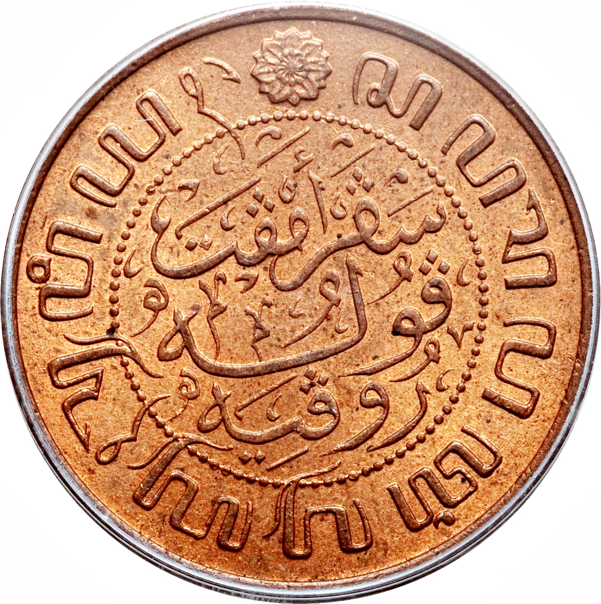Опис: Номінал яванською мовою вздовж краю та малайською мовою в крузі з крапками має однакове значення.