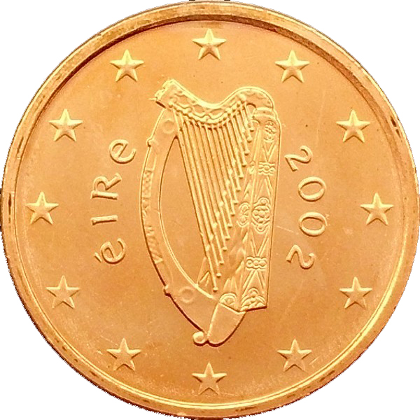 Опис: Кельтська арфа, традиційний символ Ірландії, супроводжується написом «éire», ірландським словом, що означає «Ірландія». Навколо дванадцять п'ятикутних зірок, що символізують Європейський Союз.