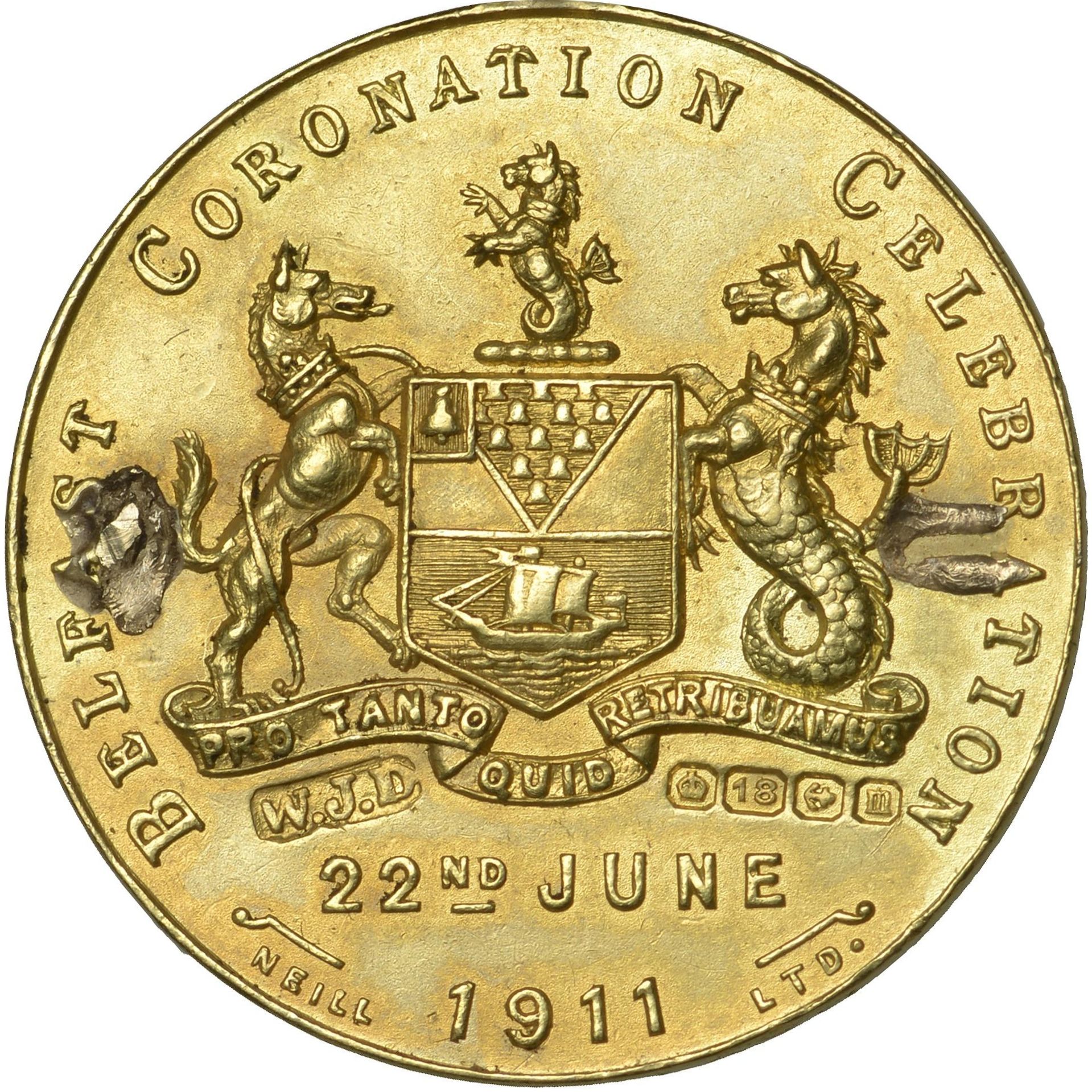 Медаль — Георг V (коронація; Белфаст, золото) 1911 – 1911 Ірландія