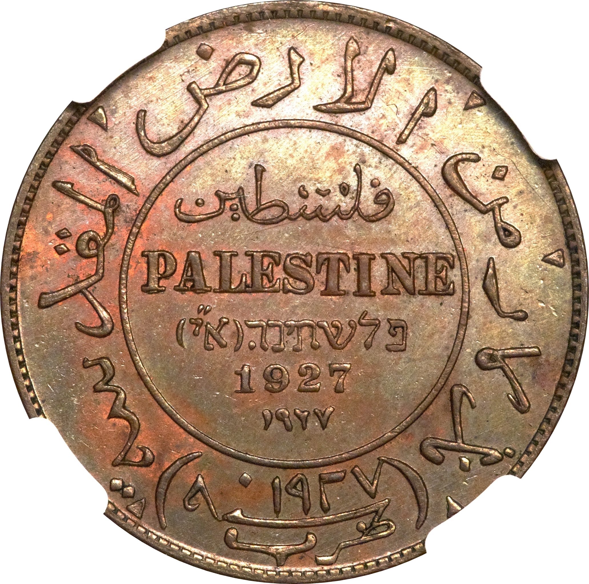 Опис: Аверс монети Палестина 1 міл у внутрішньому колі (Палестина арабською, англійською та івритом із датою нижче). Арабський напис та дата у зовнішньому колі.