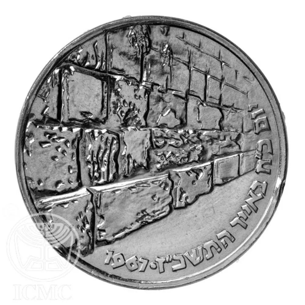Гурт: На срібних монетах B.U. та золотих монетах викарбувано опис «28-й день місяця ліар — 2-й день місяця сіван 5727», дати Шестиденної війни. Напис розташований на аверсі, доповнений маленькими зірочками. На срібній монеті напис розташований на реверсі, доповнений трьома маленькими ромбами. (••• 5.6-10.6 1967 ••• כ׳׳ו אייר - ב׳ סיון תשכ׳׳ז)