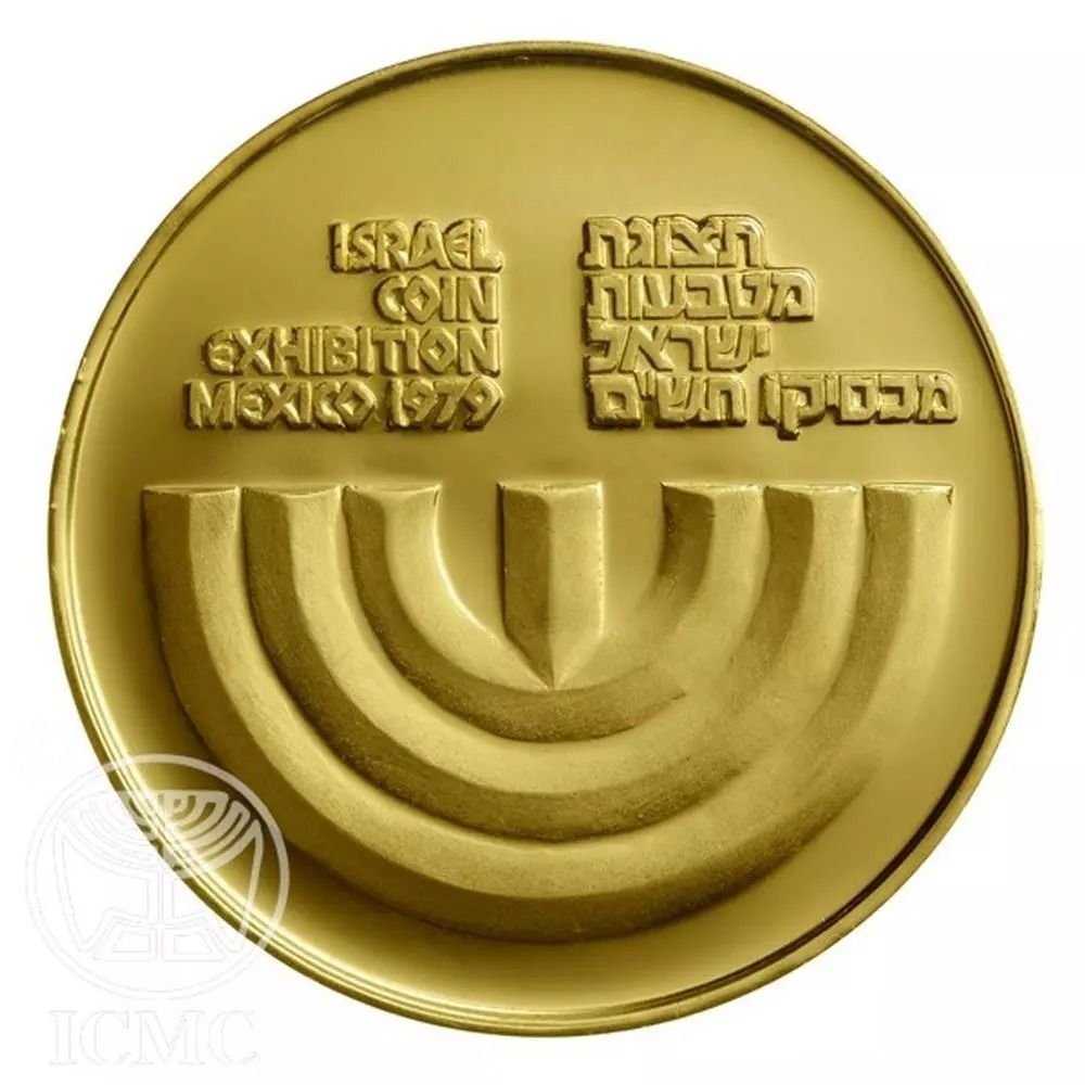 Опис: Стилізований семисвічник і над ним напис: «Виставка монет Ізраїлю, Мексика 5740» на івриті та англійській мові, в якому вказано дату «1979».