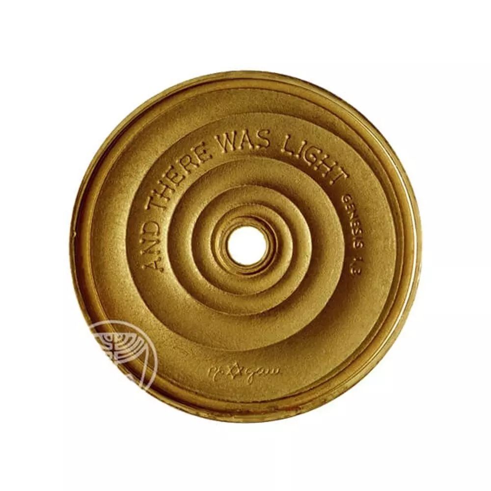 Опис: У центрі — прозора світловідбиваюча речовина, в якій при піднесенні до джерела світла з'являється сліпуча зірка Давида. Вірш на івриті: «І стало світло» (Буття 1:3). Напівкруглі вигини, що характеризують канделябр, виражають «світ вище і світ нижче», «гілки і коріння».