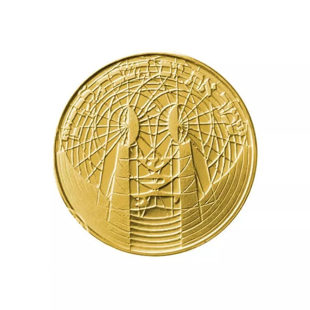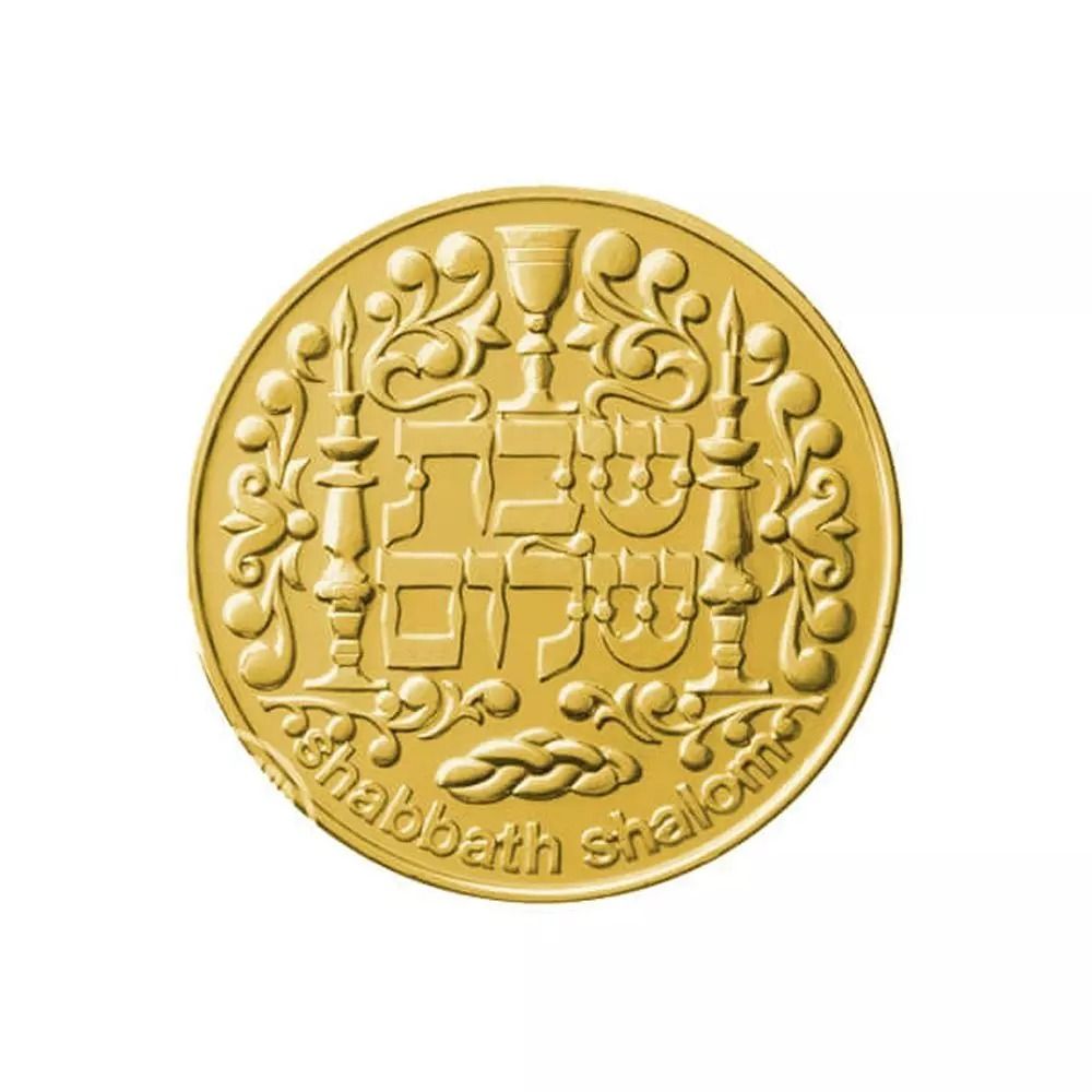 Гурт: Державний герб із словами «ДЕРЖАВА ІЗРАЇЛЬ» на івриті та англійською мовою із серійним номером. Золота медаль має фрезеровану поверхню. (STATE OF ISRAEL מדינת ישראל)