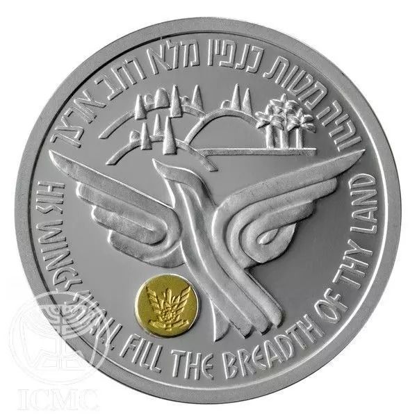 Опис: Стилізований малюнок птаха в польоті з пагорбами Єрусалиму над ним і емблемою ВПС Ізраїлю під ним; вірш «ЙОГО КРИЛА ЗАПОВНЮЮТЬ ШИРОТУ ТВОЄЇ ЗЕМЛІ» (Ісая 8) викарбуваний на івриті вздовж верхнього краю медалі та англійською мовою вздовж нижнього краю.