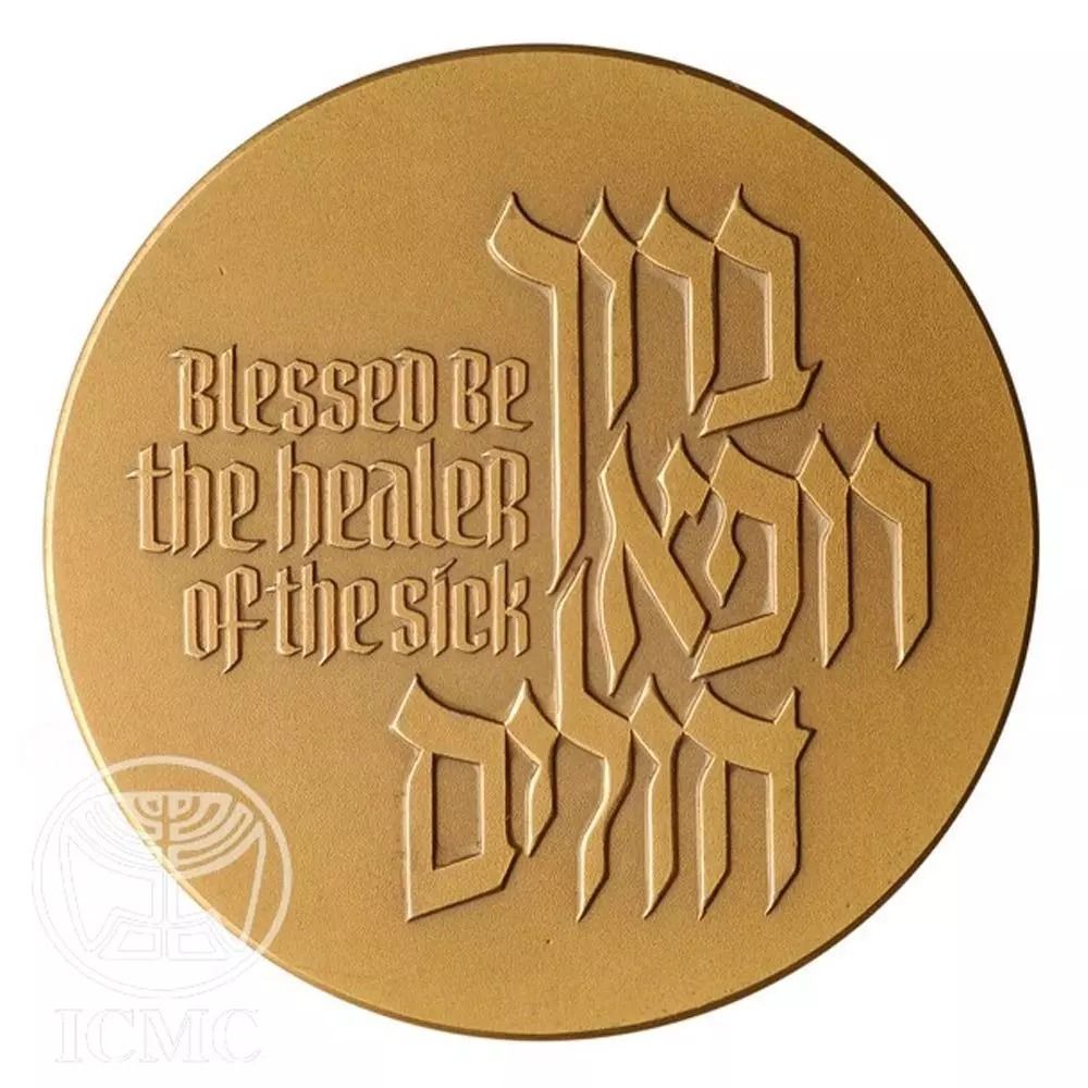 Опис: У центрі — стилізований малюнок сонця, що світить як символ праведності та зцілення, і молода гілка, що символізує зростання та свіжість. На обідку — вірш на івриті та англійською мовою: «І твоє здоров'я швидко відновиться» (Ісая 58:8).