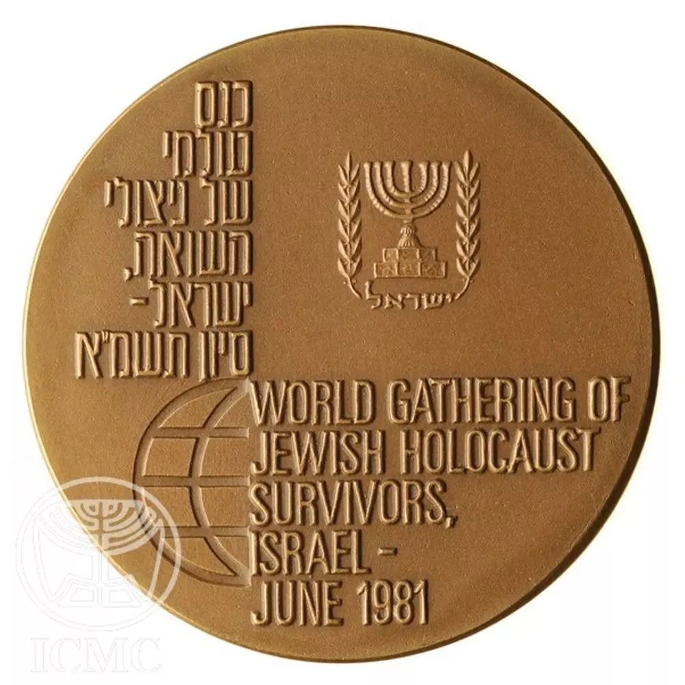 Опис: Державний герб і напис: «Всесвітня конвенція тих, хто пережив Голокост, Ізраїль — Сіван 5741». Англійський переклад розміщений на боці стилізованого глобуса «Всесвітнє зібрання євреїв, які пережили Голокост, Ізраїль — червень 1981 року».