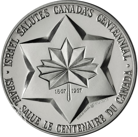 Опис: У центрі — стилізований кленовий лист (емблема Канади), розміщений на тлі зірки Давида. З боків від стебла листа розмічено дату «1867–1967». Слова «Держава Ізраїль» розташовані паралельно до двох нижніх кутів зірки Давида праворуч та семигілкового свічника ліворуч. По колу — напис англійською та французькою мовами: «Ізраїль вітає сторіччя Канади».