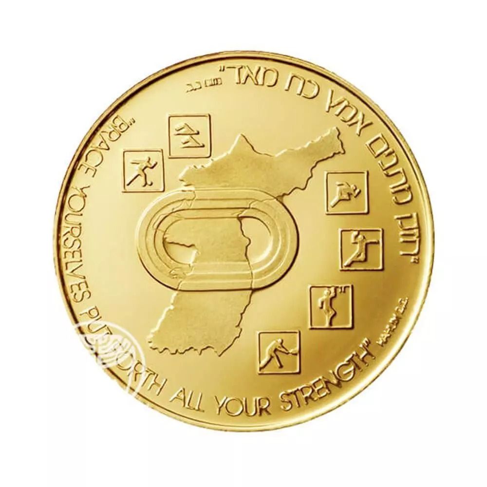 Опис: Олімпійський стадіон, що символічно об'єднує Північну і Південну Корею. Емблеми шести олімпійських видів спорту. Вірш «Зберіться з силами, викладіть усі свої сили» (Наум 2:2) на івриті та англійській мові.