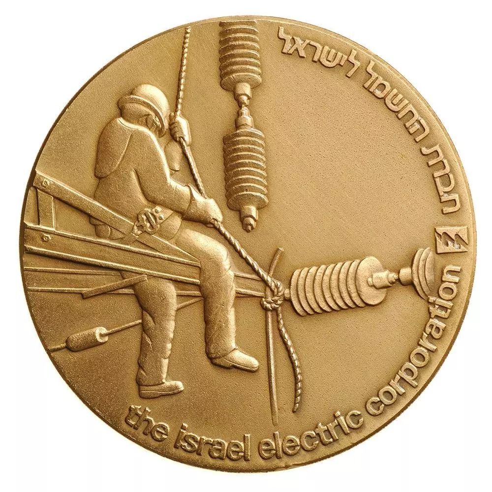 Опис: Співробітник компанії на роботі. По периметру монети напис «Ізраїльська електрична корпорація» на івриті та англійській мові.
