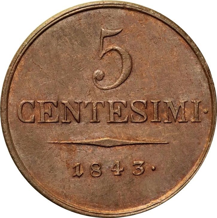 5 центезімі — Фердинанд I 1839 – 1846 Ломбардія-Венето, Королівство