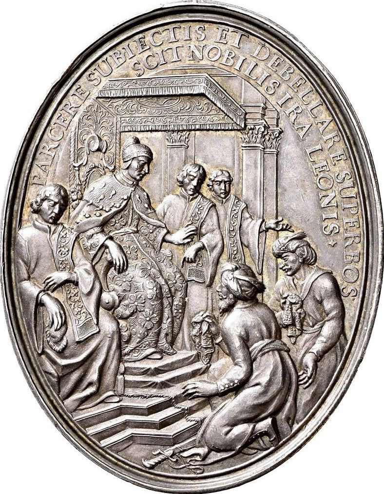 Гурт: Проста з написом. (* SERENISSIMI LEONIS ALATI / SOLO SALOQUE TURCARUM VICTORIS / TRIUMPHALE FLORILEGIUM • 1687 *)