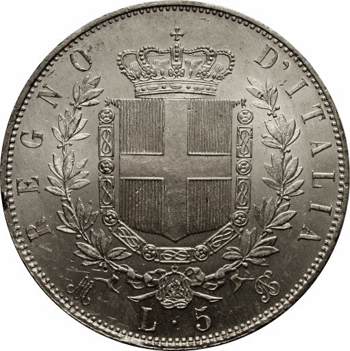 5 лір — Віктор Еммануїл II 1861 – 1878 Італія