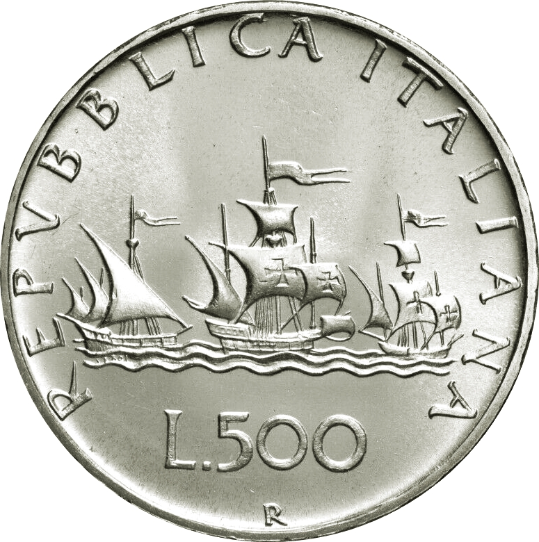 Гурт: Рельєфний напис з датою в оточенні шести зірок (по три з кожного боку) (REPVBBLICA ITALIANA ***1960***)