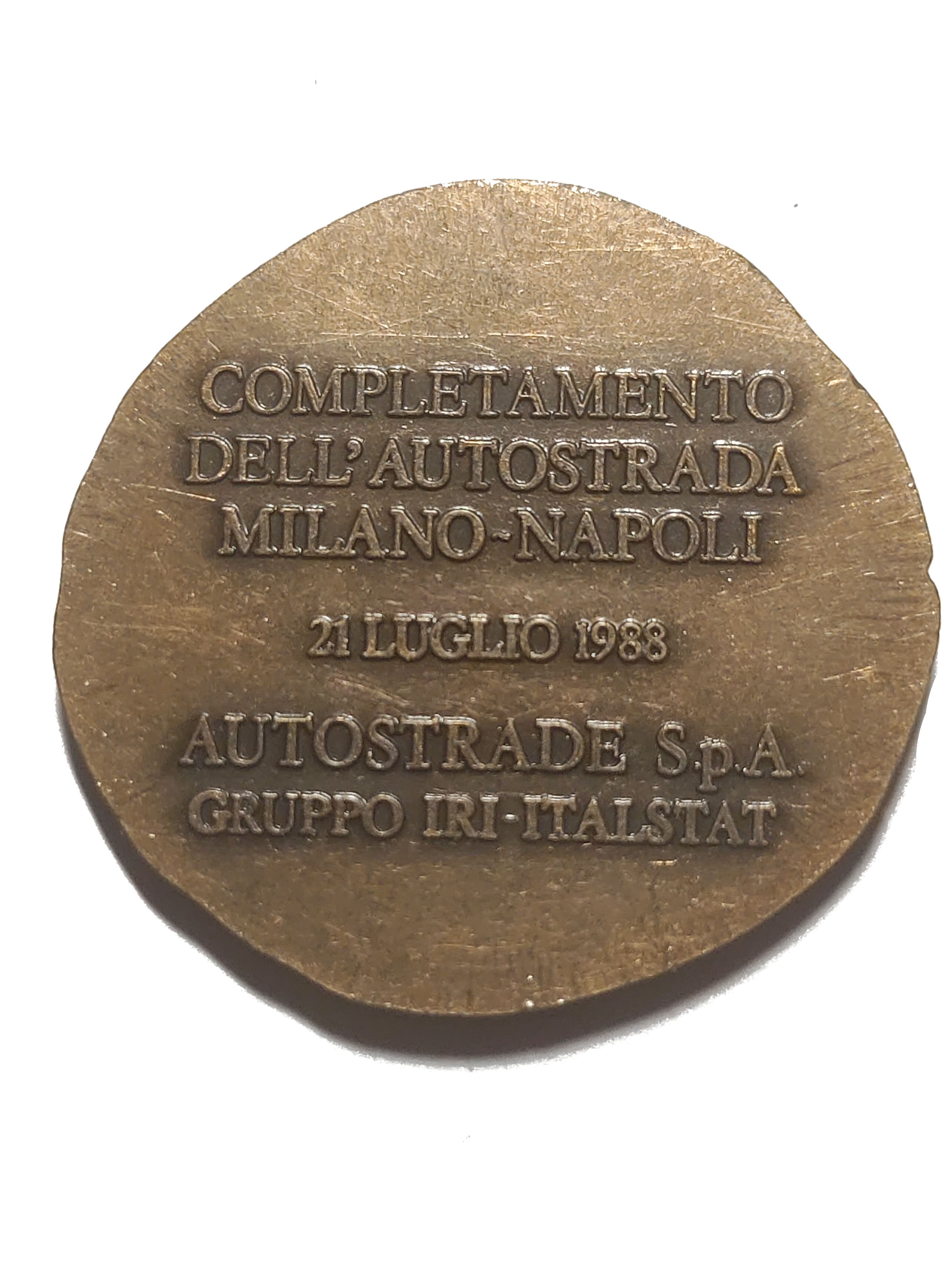 Медаль — Завершення будівництва автомагістралі Мілан-Неаполь 1988 – 1988 Італія
