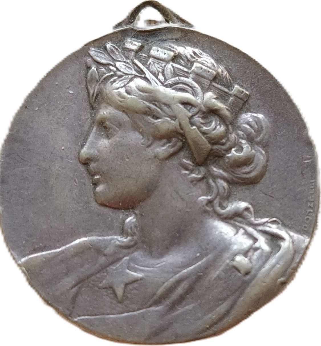 Опис: Бюст алегоричної фігури Італії з вежами, спрямованими вліво, в плащі, з п'ятикутною зіркою на грудях і коронованим гербом Савойї на правому плечі.