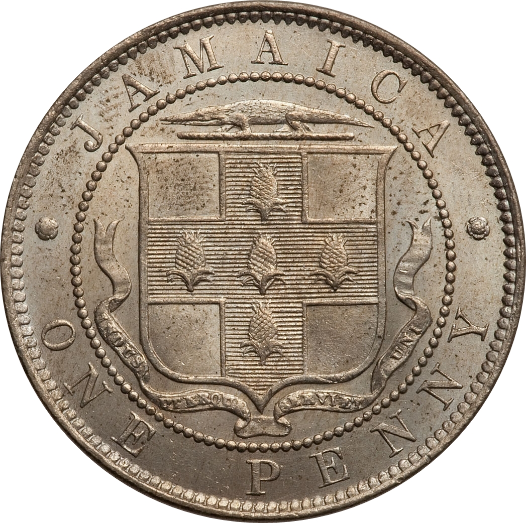 1 пенні — Едуард VII (герб з горизонтальним затіненням) 1902 – 1903 Ямайка